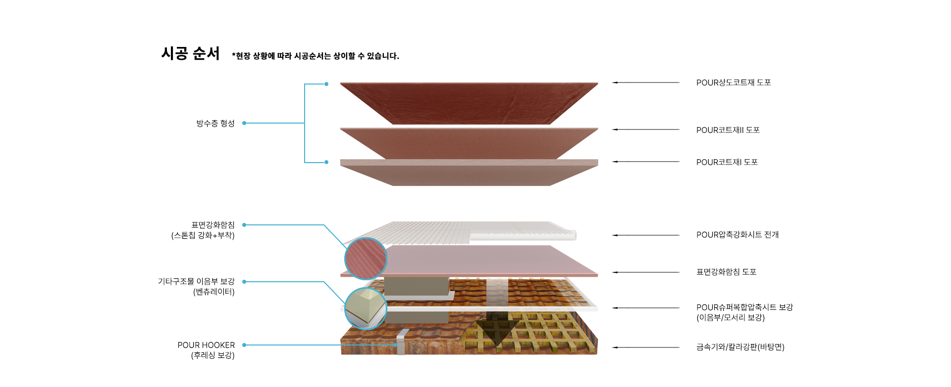 POUR금속기와/칼라강판 및 배수로 방수 공법