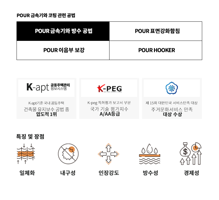 POUR금속기와/칼라강판 코팅 공법은 노후화된 금속기와 표면에서 발생하는 스톤칩의 탈락 문제를 해결하기 위해 설계된 기술입니다.