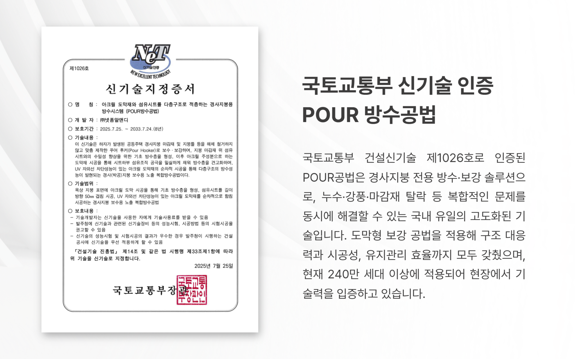 제10-2544157호콘크리트 표면 강화 및 습기 차단을 위한 공법