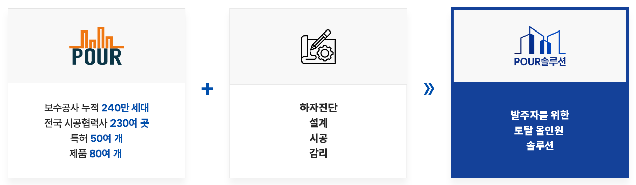 POUR솔루션에서 사용하는 POUR공법 기술과 자재를 따로 구매해 셀프로 시공하실 수 있도록