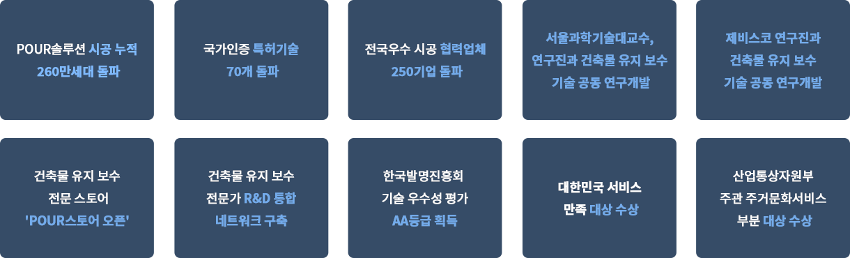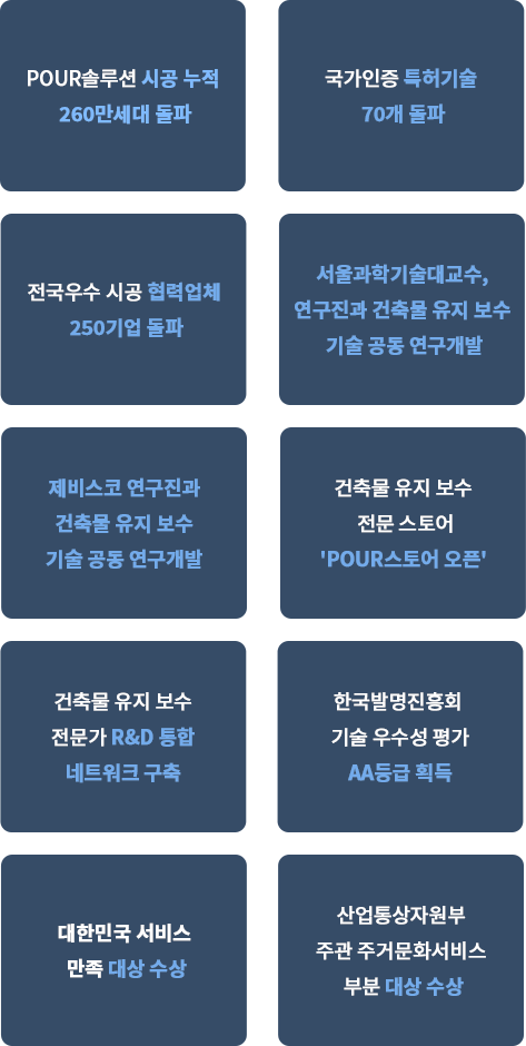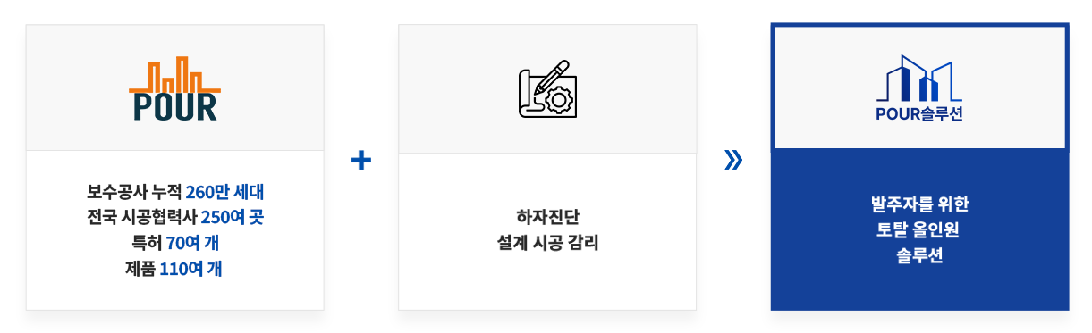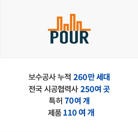 POUR솔루션은 전국 230여 곳의 우수한 시공 협력 업체와 협약을 맺고 있습니다.